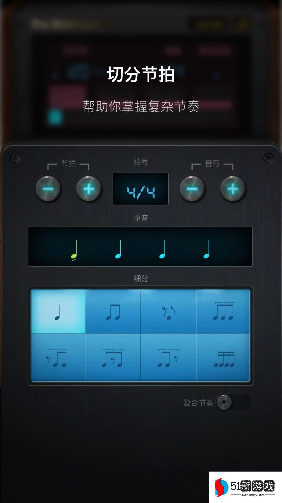 1、拆分和复合节拍:提供了丰富多样的拆分模式和复合节拍设置,以帮助用户更好地理解和掌握复杂的节奏。