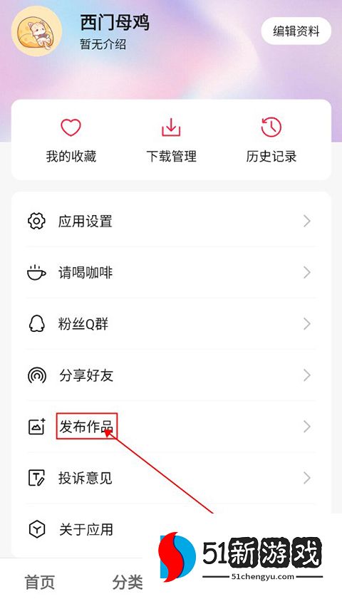 1、用户点击右下角的“我的”进入个人中心,然后点击中间的“发布作品”进入。