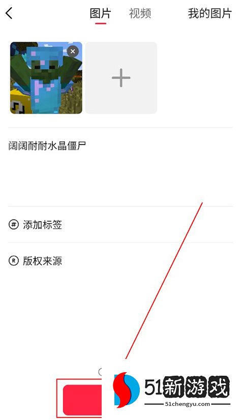 3、您需要填写图片或视频的内容描述,以及标签或来源,然后点击右上角的“发布”。
