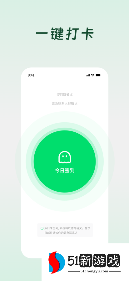 Demumu的使用方式极为简便,用户无需登录即可直接使用,这大大降低了使用门槛。进入应用后,每日只需轻轻一点完成签到,系统便会自动记录并跟踪用户的打卡状态。这一设计不仅节省了用户的时间,还确保了数据的实时性和准确性。更值得一提的是,当用户在设定时间内未进行签到操作时,Demumu会立即发送确认提醒,若用户仍未响应,系统则会迅速向预设的紧急联系人发送通知,确保在紧急情况下能够及时获得援助。