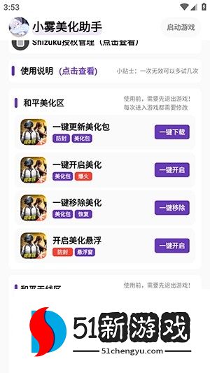 小雾美化包是一款极具价值的手机游戏优化工具,旨在满足玩家的个性化和视觉需求。小雾美化包app其丰富的美化选项和简单的一键设置功能使玩家可以轻松定制他们的角色和装备,此外,结合智能图像质量调节功能,这款应用程序无疑增强了每个玩家的游戏体验,并带来了更流畅的操作体验。从初学者到经验丰富的玩家,无论您的需求是什么,小雾美化包都可以为您的手机游戏添加无限辅助,使其成为一个值得一试的好工具!