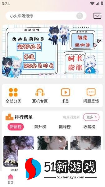 1、进入到主界面,可以快速定位到感兴趣的广播剧专区进行浏览。