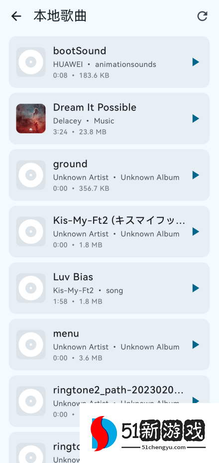 3、扫描的过程会有一点长,需要耐心等待一会。扫描完毕后不但会显示音乐文件,录音文件也会被识别到。