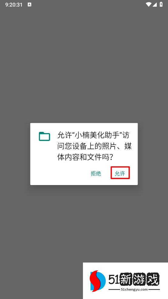 1、并安装小楠美化助手应用程序后,首次启动时需要授予软件必要的系统权限,以确保其各项功能能够正常访问和运行。