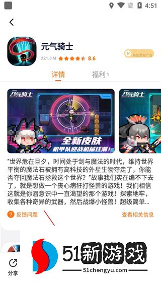 2、任意选择一款游戏,以元气骑士为例,进入游戏界面后直接点击开始游戏即可畅玩。