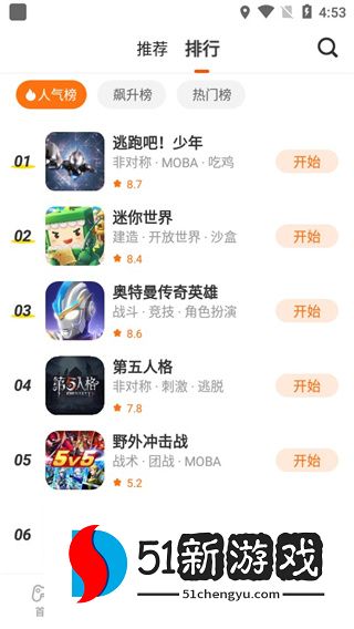 4、甚至更可以在排行榜单当中选择游戏进行畅玩。