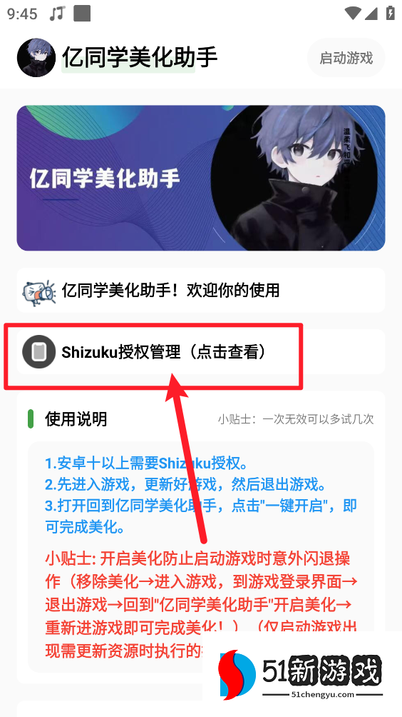 2、完成后进入主页,打开Shizuku授权管理,进行下载安装并授权,注:安卓十以上需要Shizuku授权。