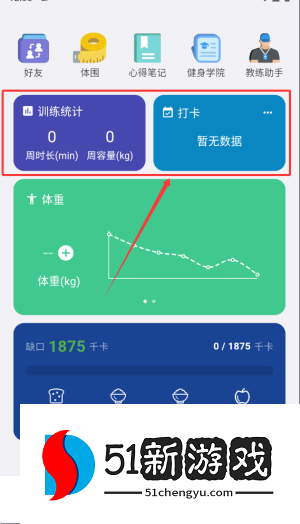 4、发现页面有训练数据统计和运动登记记录,帮助用户跟踪他们的健身进度。