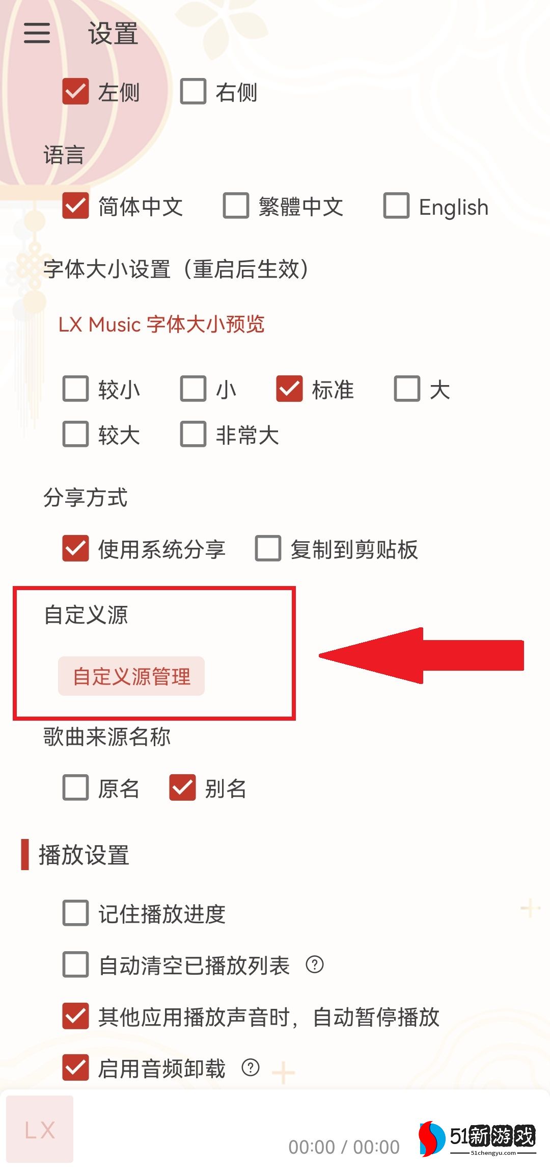 3、向下滚动以查找自定义源,然后单击自定义源管理。