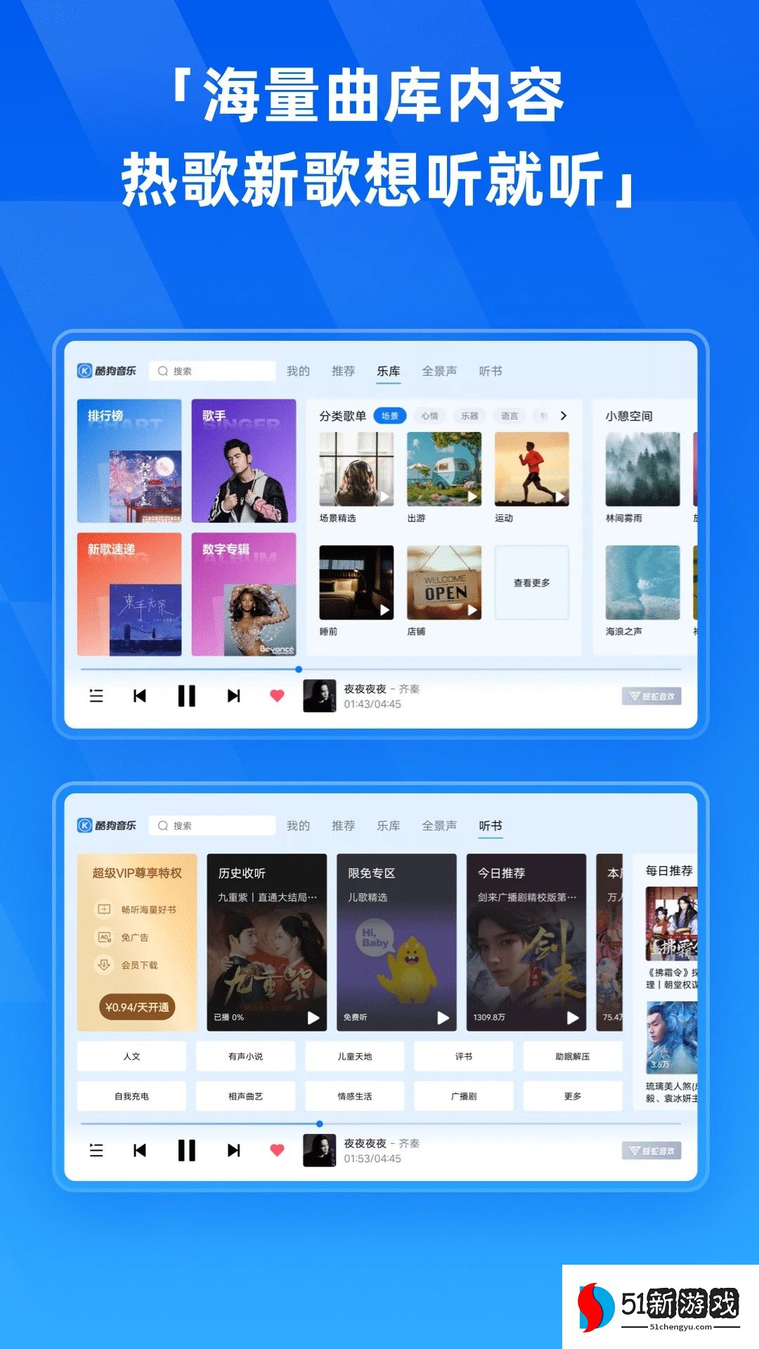 1、资源丰富:拥有庞大的音乐资源库,每天更新,确保用户能听到最新流行歌曲。