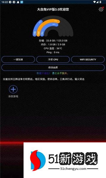 1、打开大白兔画质助手vip版免费版,点击右上角的+号按钮添加自己想玩的吃鸡游戏。