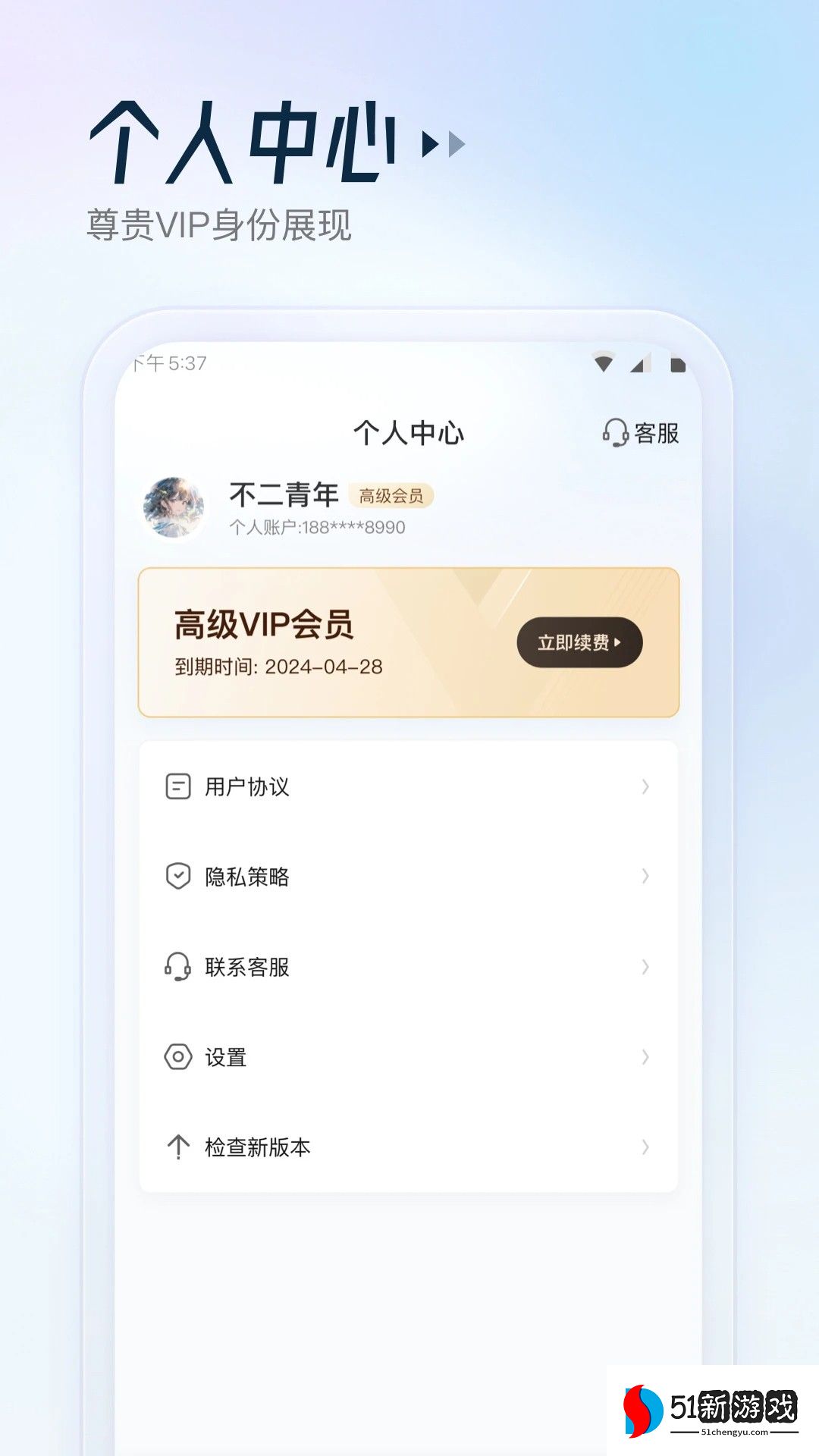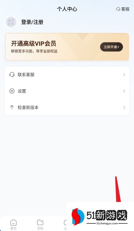 5、我的页面支持与帐户相关的功能,如登录和注册、VIP升级、客户服务联系和设置检查。