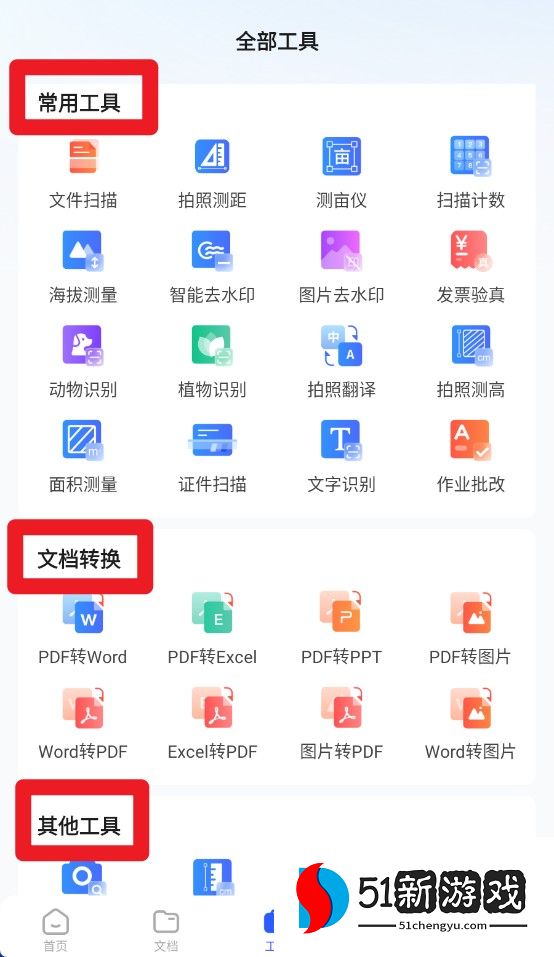 2、单击下面的文档按钮查看所有已保存的扫描或识别文件,以便于统一管理和快速搜索。