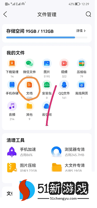 2、在文件分类部分选择解压功能,进入管理页面。
