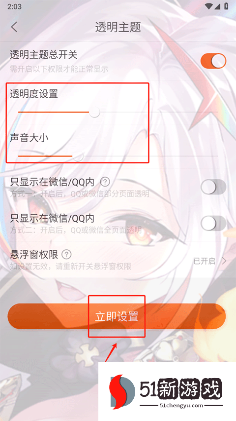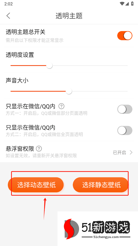 3、动态壁纸需要从相册中选择视频,而静态壁纸需要图像。导入后,调整壁纸的透明度和音量,最后点击“立即设置”完成该过程。