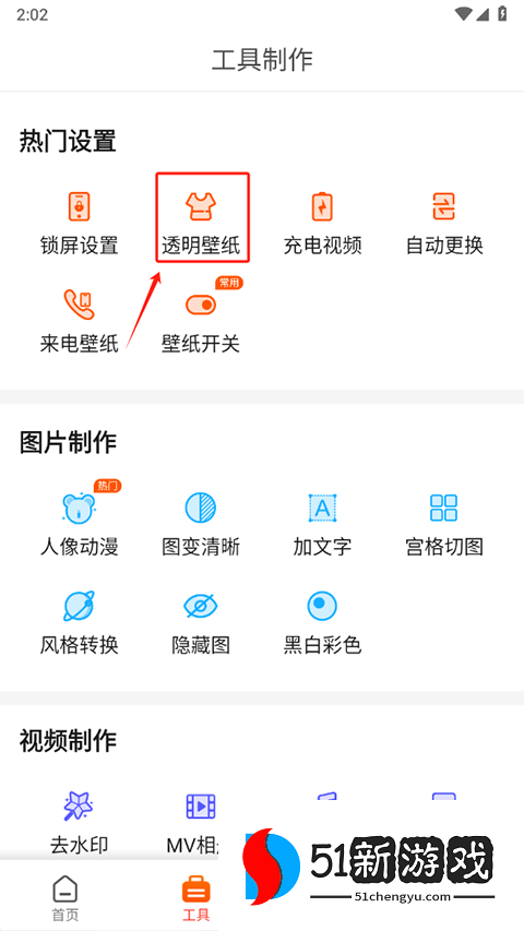 1、在工具页面上选择要创建的工具,例如制作透明壁纸。
