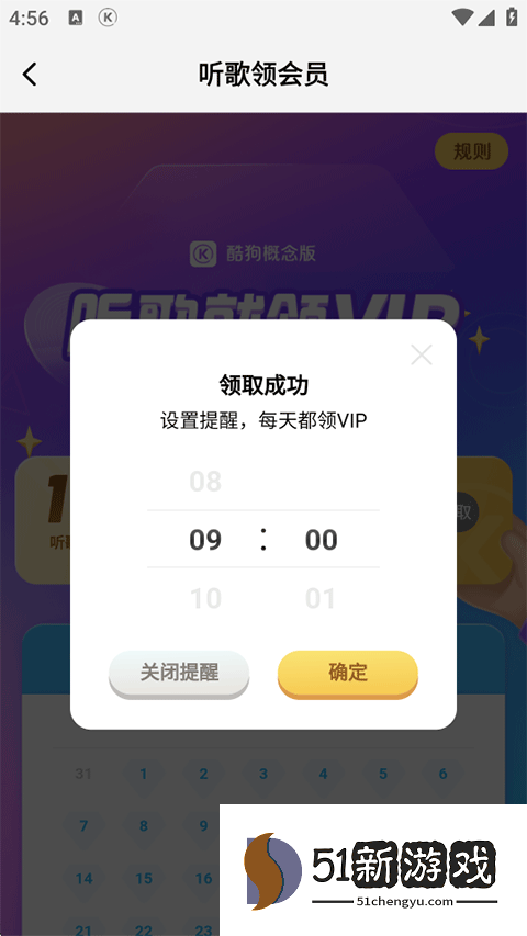 3、【点击即领】,还可以设置提醒签到,每日听歌免费领取VIP。