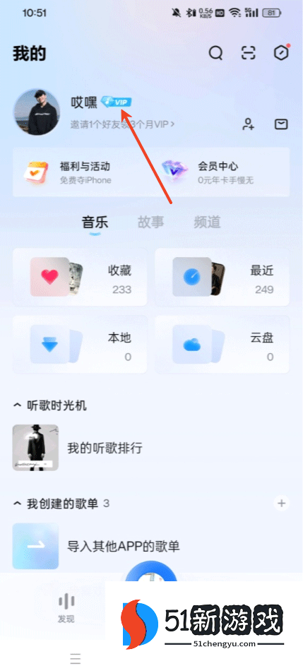 5、返回我的页面可以查看VIP到账情况,开始畅听喜欢的音乐。