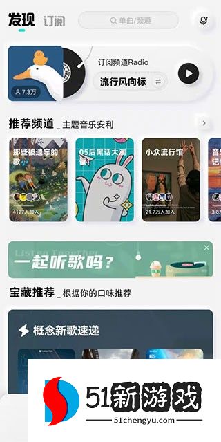 2、整个版块社区味浓厚,我们既可以随手点赞别人发出的帖子,也可以书写自己日常的听歌感受,甚至还可以将整个频道都分享出去。而【发现】页上保留了一个频道的更新区,以此来让我们能够更快地找到频道里的各种“动向”。