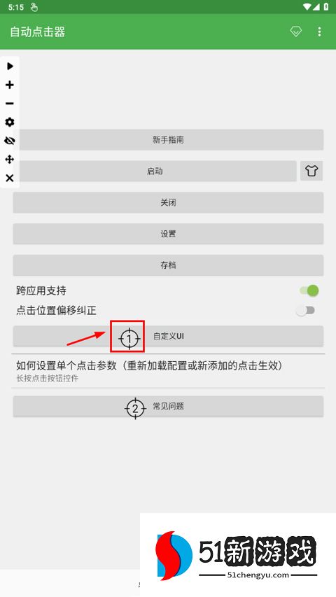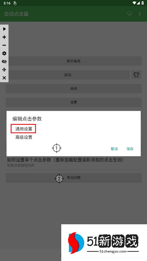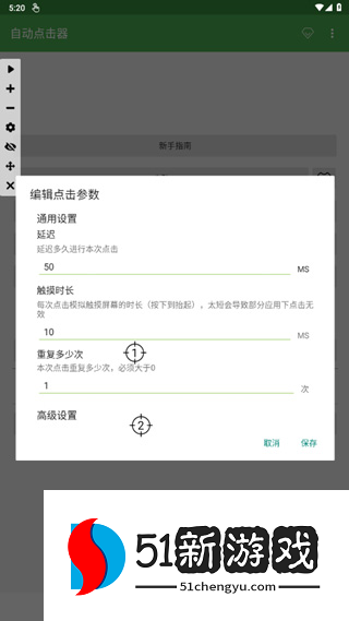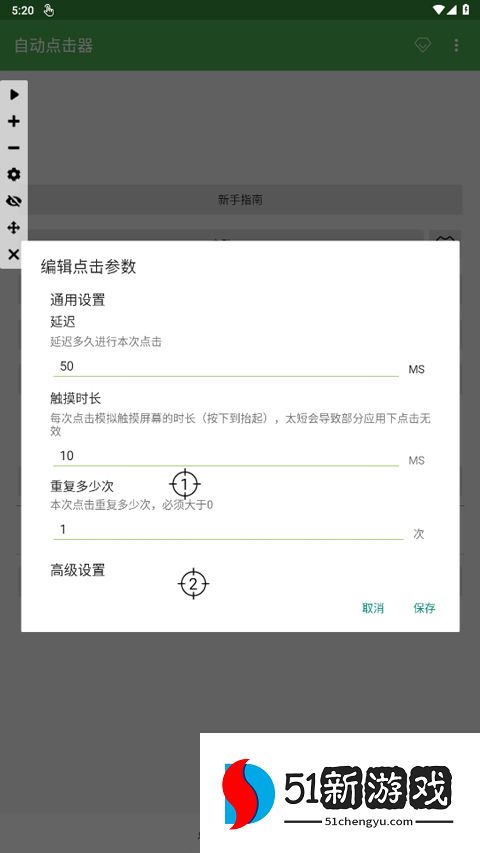 1、打开自动连点器,然后长按屏幕中间的位置点。