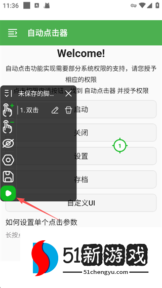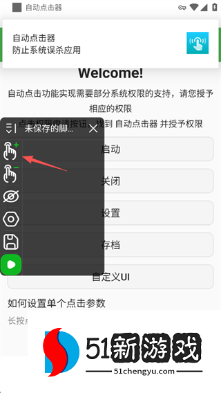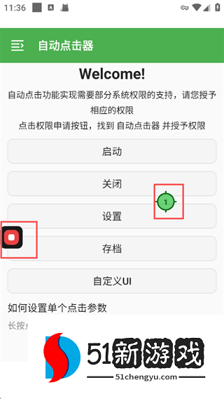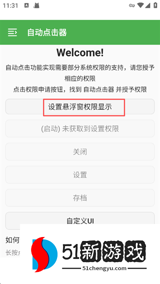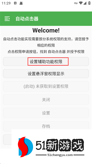 1、打开自动点击App,点击【设置辅助功能权限】。