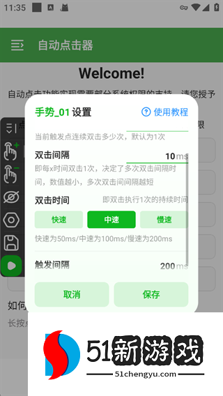 1、可详细设置连击参数,点击周期、触摸时长等,满足精细化操作需求。