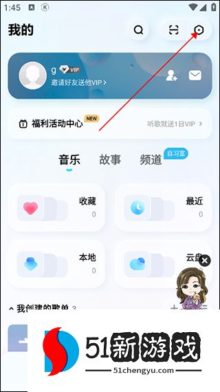 2、进入我的主页,点击右上角的“设置”图标按钮。