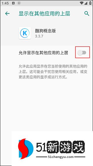 5、来到应用授权页面,把允许显示在其他应用上层右侧的按钮打开即可。