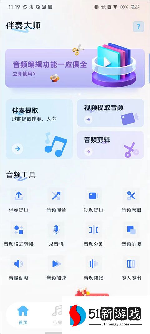 伴奏大师是一款专业的伴奏剪辑提取软件,拥有丰富的功能选项,用户可以自由选择各种音频来进行剪辑提取操作,轻松享受优质的服务,还能直接执行智能化的音频处理操作,包括降噪、录音等,轻松获取热门音频和伴奏,能完全满足所有使用需求,还允许用户轻松创建各种令人兴奋的手机铃声或伴奏音乐,随时随地使音乐编辑更容易,还支持各种常用音频格之间的相互转换,方便用户轻松管理,有需要的用户欢迎来本站下载软件。