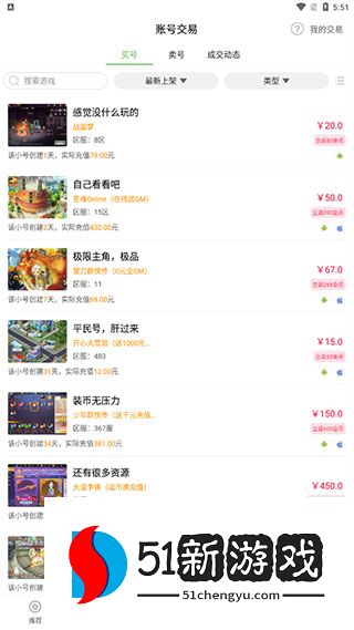 4、点击第三个模块,切换为交易区域,在这里你可以出售游戏账号或购买游戏账号。