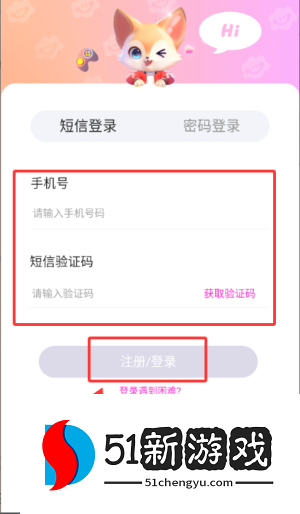 3、在登录页面填写验证码,点击注册或登录完成验证。