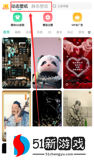 3、壁纸部分提供两种壁纸资源:动态效果和静态图像,使用户可以根据自己的喜好轻松选择和设置。