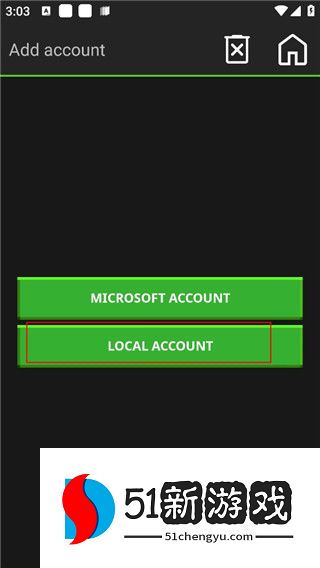 8、当我们点击启动游戏时会进入此界面,这是告诉我们没有账户,我们点击“LOCAL ACCOUNT”创建账户。