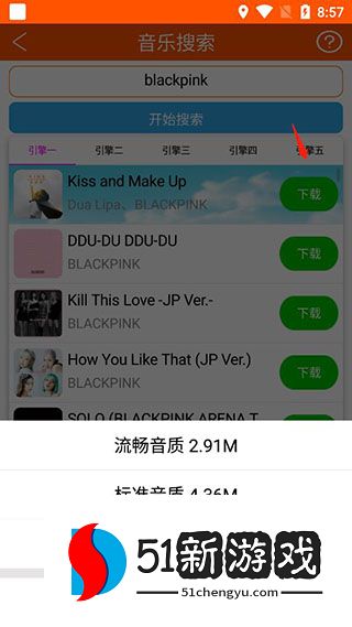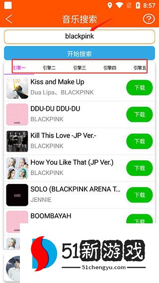 2、您还可以在搜索框中搜索歌手或歌曲标题,并提供来自多个引擎的搜索结果。