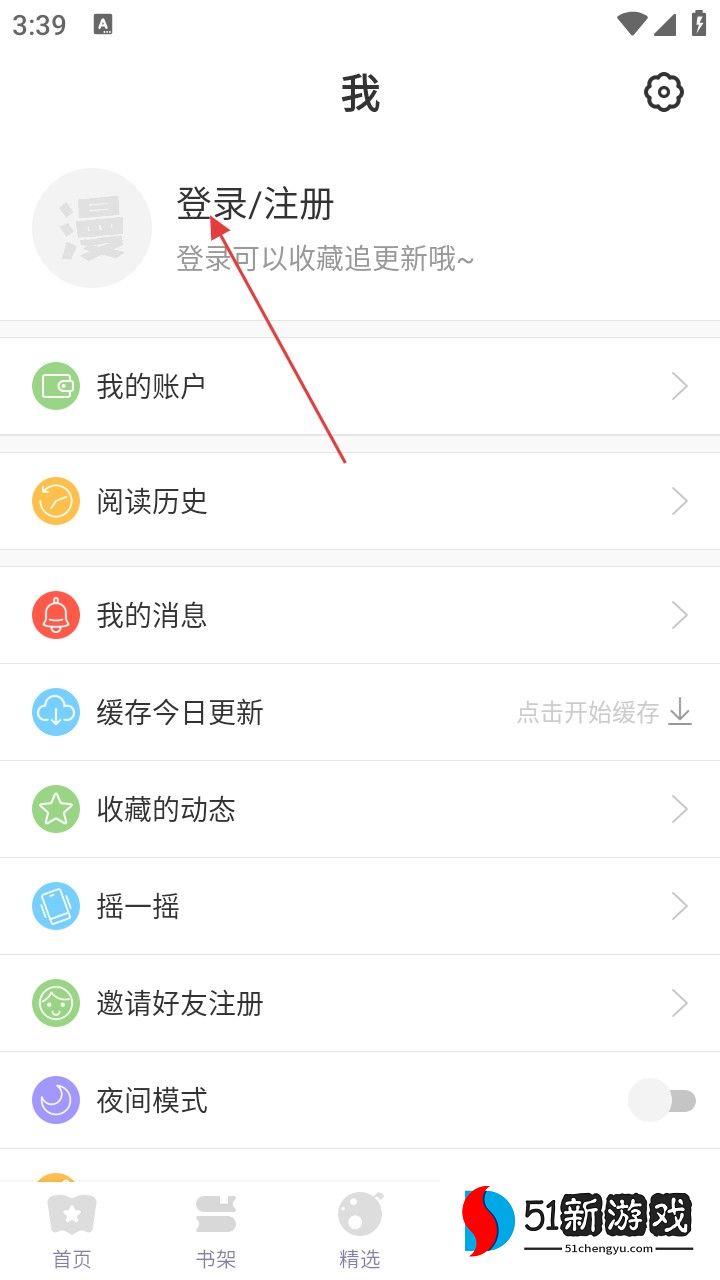 1、在漫漫漫画的主页上,您可以通过点击右下角的“我”来浏览推荐的漫画,进入您的个人相关页面。