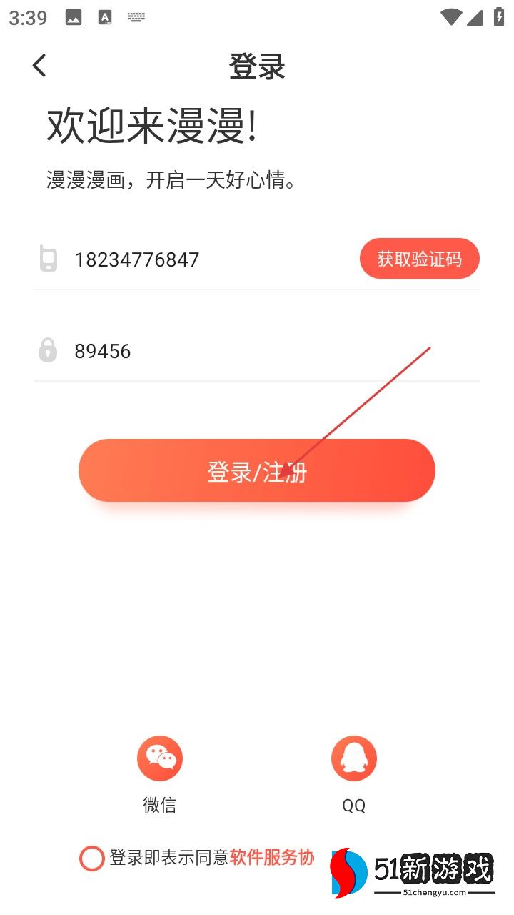 3、进入登录页面后,您可以选择输入您的电话号码和验证码,或使用微信或QQ登录。