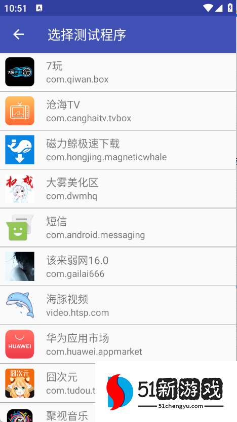 3、选择要测试的应用程序。