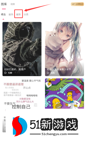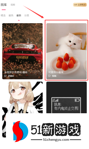 3、在图库页面上,单击最新类别标签。