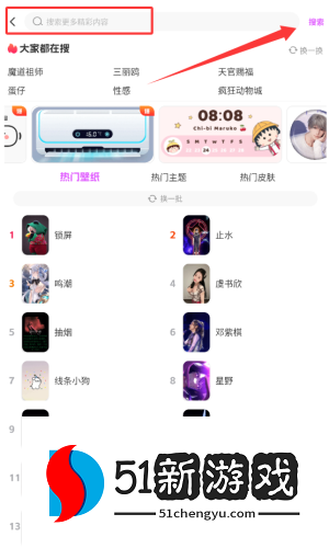 4、在搜索框中输入内容或单击热门标签。