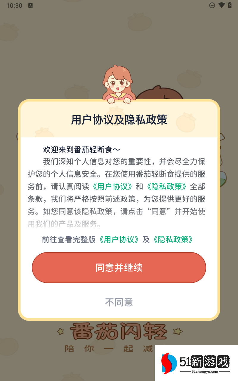 2、正式使用前,用户需要同意用户协议和隐私政策。
