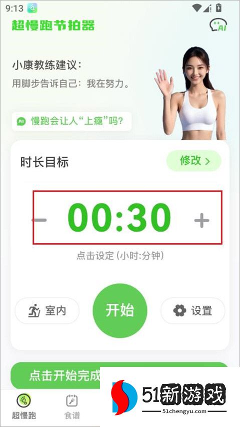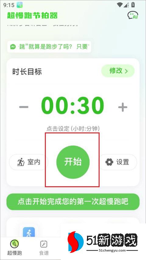 6、完成所有设置后,点击“开始”完成你的第一次超级慢跑。