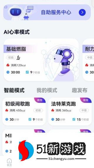 2、接下来,有智能运行和自由运行等模式,可以随时选择开始运行。