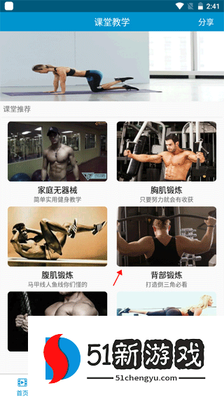 1、打开健身教学软件应用程序,您将看到许多教学模块。从中选择一个。