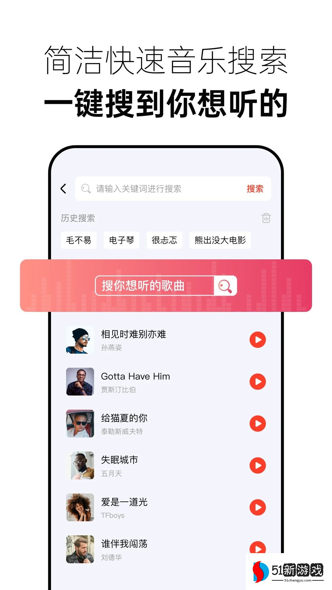 4、简洁明了的界面:极简主义的界面设计易于操作,让您轻松找到自己喜欢的音乐。