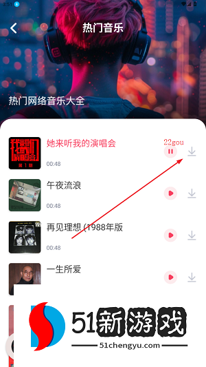 2、进入如图所示的流行音乐区域后,选择一首歌曲并单击其旁边的下载按钮。