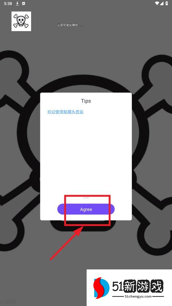 在跳转到应用进入界面时,同意协议提醒点击【agree】正式进入软件。