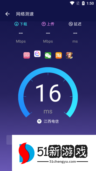 1、下载并安装安兔兔评测,打开它,进入软件主页,找到“网络速度测量”。