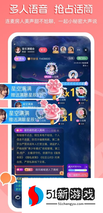 2、互动交流:用户可以通过发送弹出窗口、点赞、礼物等与主播进行互动。