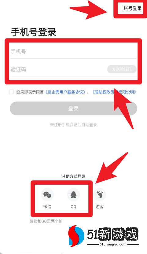 1、登录页面支持手机号验证码登录,用户还可以选择账号和密码登录,或通过微信或QQ登录。