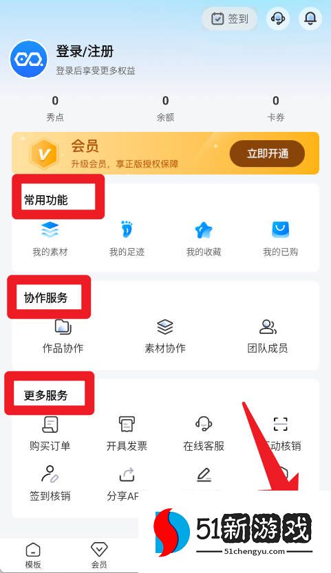 5、我的页面允许您查看常用功能、协作服务和更多服务入口,支持订单管理、团队协作和物料管理。